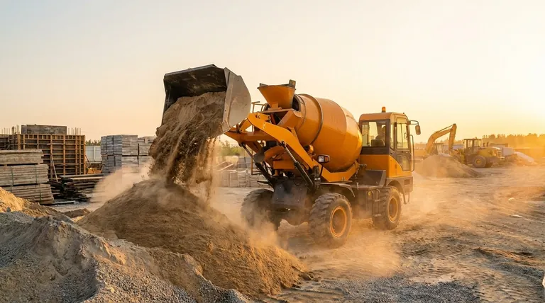 The critical insight is that the self-loading mechanism isn't just a feature; it transforms the mixer from a single-purpose machine into an integrated, mobile concrete batching plant. This consolidation of loading, mixing, and transporting is its fundamental advantage.