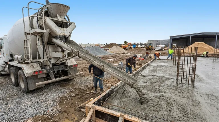 Pouring concrete from a mixer truck is accomplished by using the vehicle's adjustable chute to guide the mixed concrete precisely into its designated location. The process relies on the controlled rotation of the mixing drum to discharge the material at a steady, manageable rate, ensuring an accurate and efficient pour.