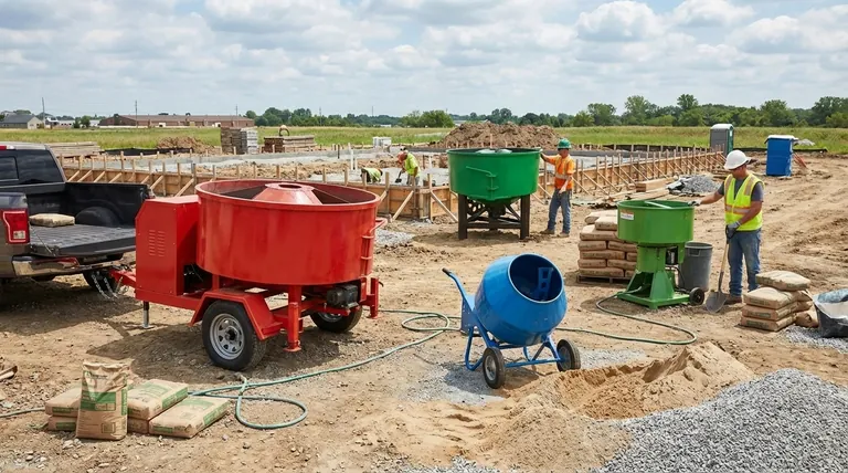 - If your primary focus is on-site maneuverability for projects like walkways or patios: A wheelbarrow-style mixer is the ideal choice, blending a practical capacity with the ability to move and pour anywhere.