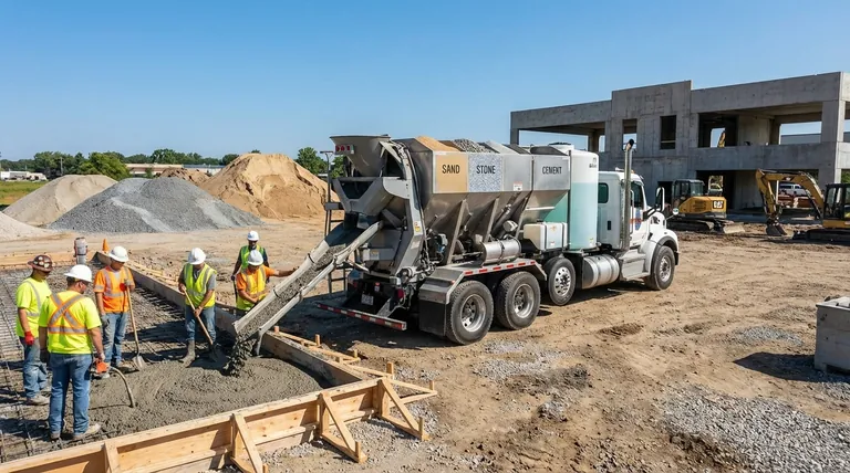 - If your primary focus is simple logistics for a standard, high-volume pour: A coordinated fleet of traditional ready-mix trucks from a nearby plant may offer a more straightforward solution.
