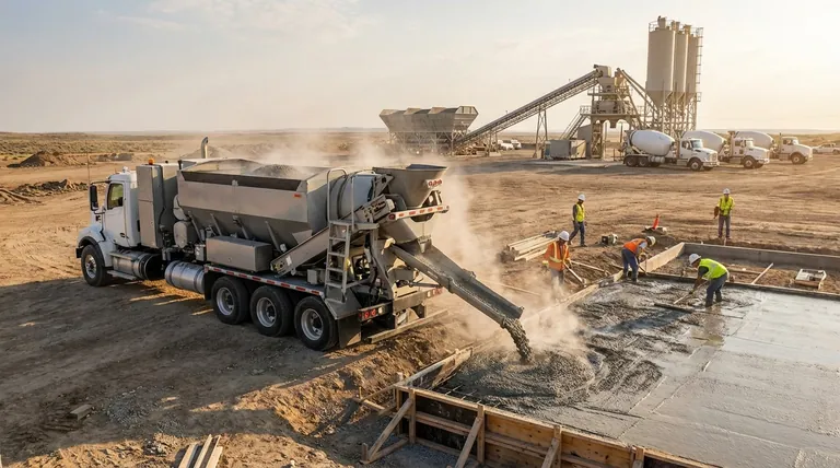 For massive, continuous pours like a large foundation or high-rise floor, the sheer output capacity of a centralized plant is unmatched. A coordinated fleet of ready-mix trucks can deliver far more concrete per hour than a single volumetric mixer.