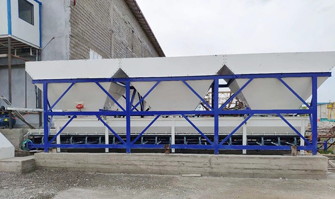 Batching Process: The PLD800 or PLD1200 three-bin batching machine uses electronic scales to measure the exact quantities of sand, stone, cement, fly ash, water, and additives. This precise batching ensures that the final concrete mix meets the required specifications.